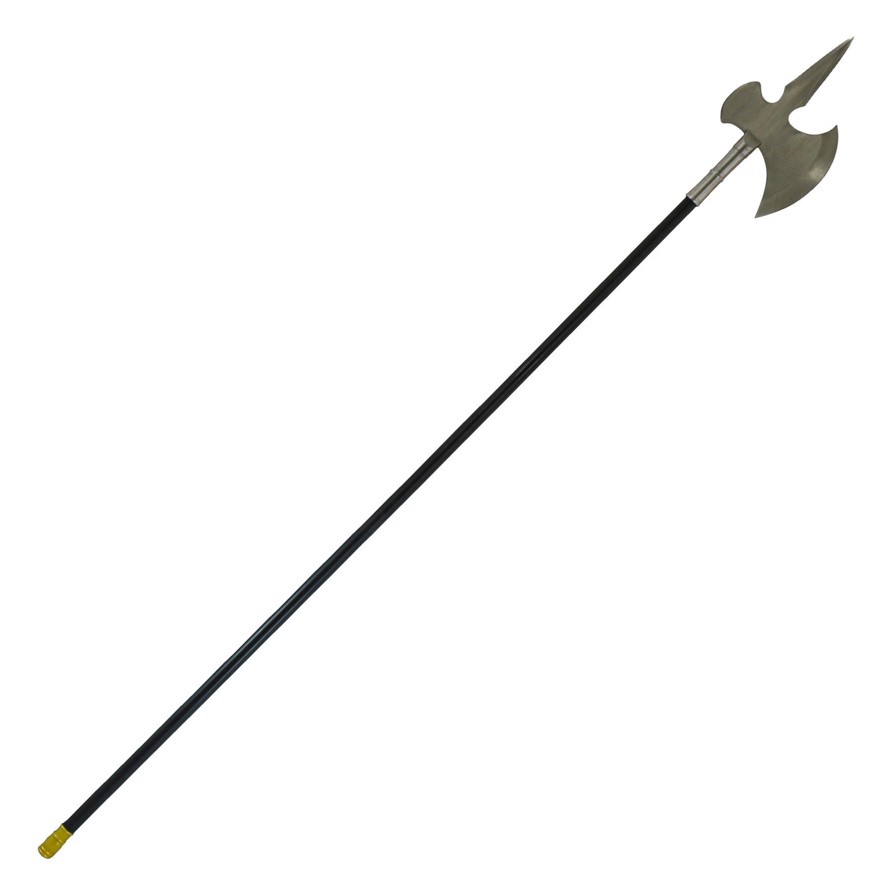 This 74-inch stainless steel halberd is inspired by those historical designs, capturing the unmistakable silhouette and commanding presence of a full-length pole weapon. The head follows the traditional tri-functional layout: a forward spear point for thrusting, a broad axe blade for cutting, and a rear hook historically used for pulling shields, riders, or armor. While constructed using modern materials, the proportions and form remain faithful to classic European halberds.